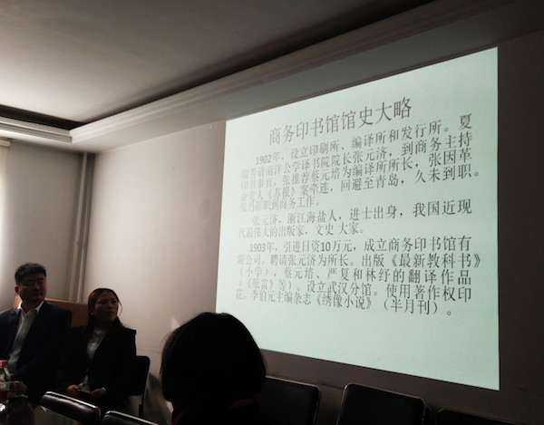 公司領(lǐng)導(dǎo)從商務(wù)印書館創(chuàng)立背景講起,大家認(rèn)真聆聽。
